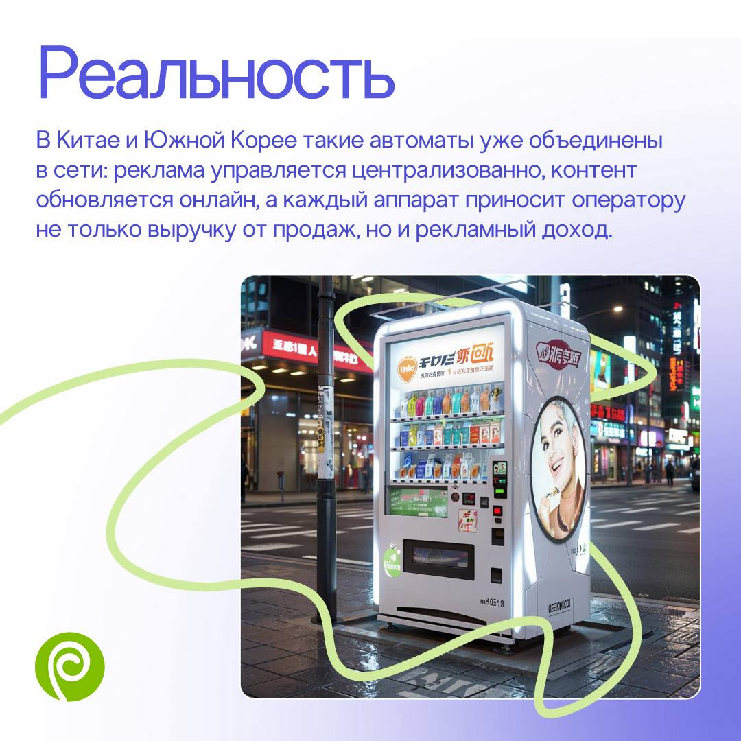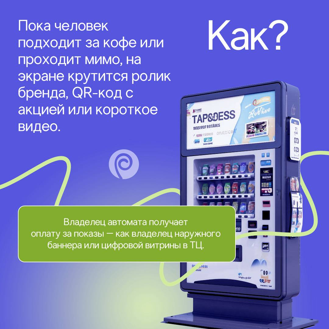 ➡️У вендора появляется второй источник дохода. Экран превращается в рекламное место, а автомат — в канал коммуникации.
